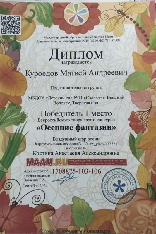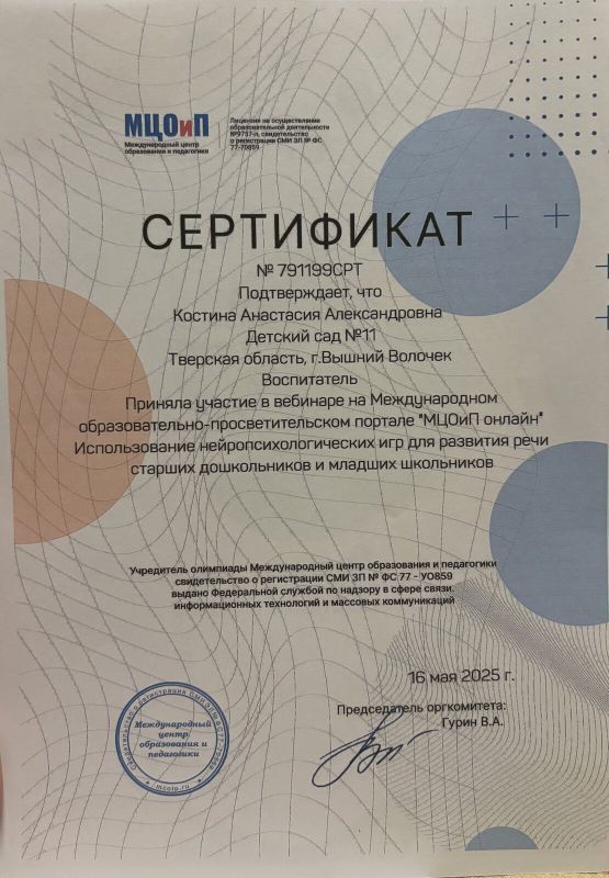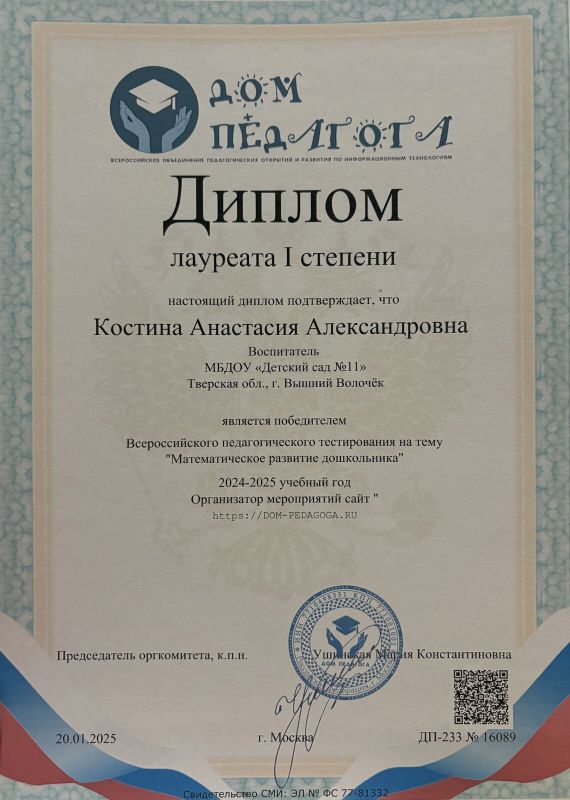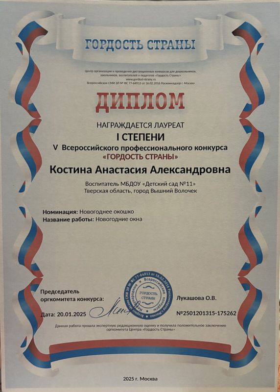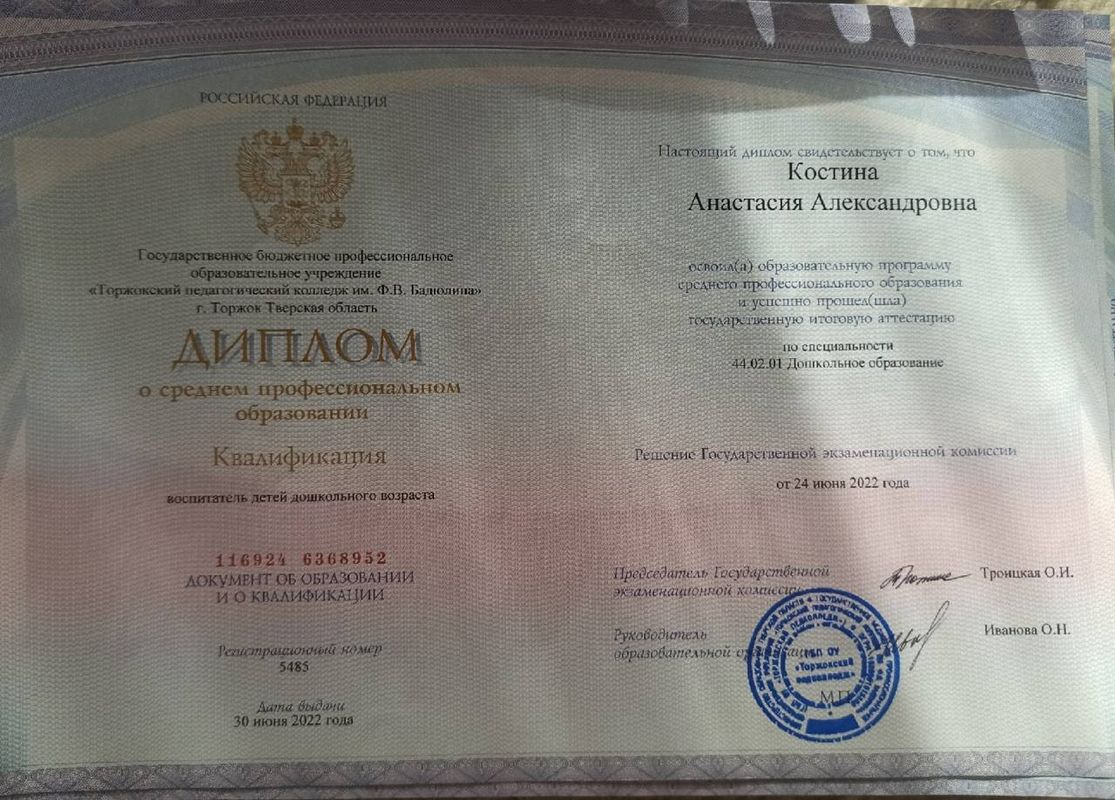 Уже три года я имею счастье и огромную ответственность быть воспитателем в дошкольном учреждении. Для меня это не просто профессия — это исполнение детской мечты. С самого раннего возраста я знала, что хочу стать педагогом. Этот внутренний выбор привёл меня в Торжокский педагогический колледж имени Ф.В. Бадюлина, где я получила не только знания и навыки, но и уверенность в правильности избранного пути.